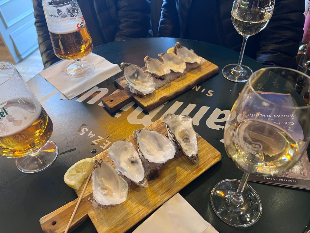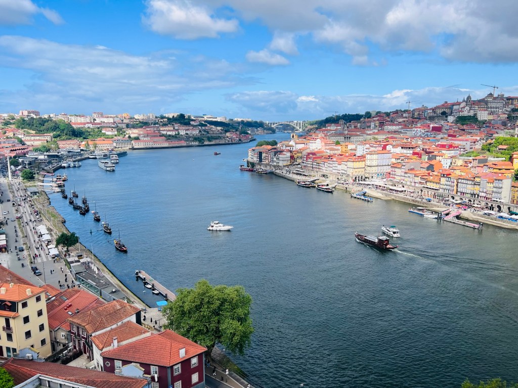 It was a cool and windy day with pockets of sunshine in Porto. We took the metro across the Luis I bridge and then down to the river level via the cable car.