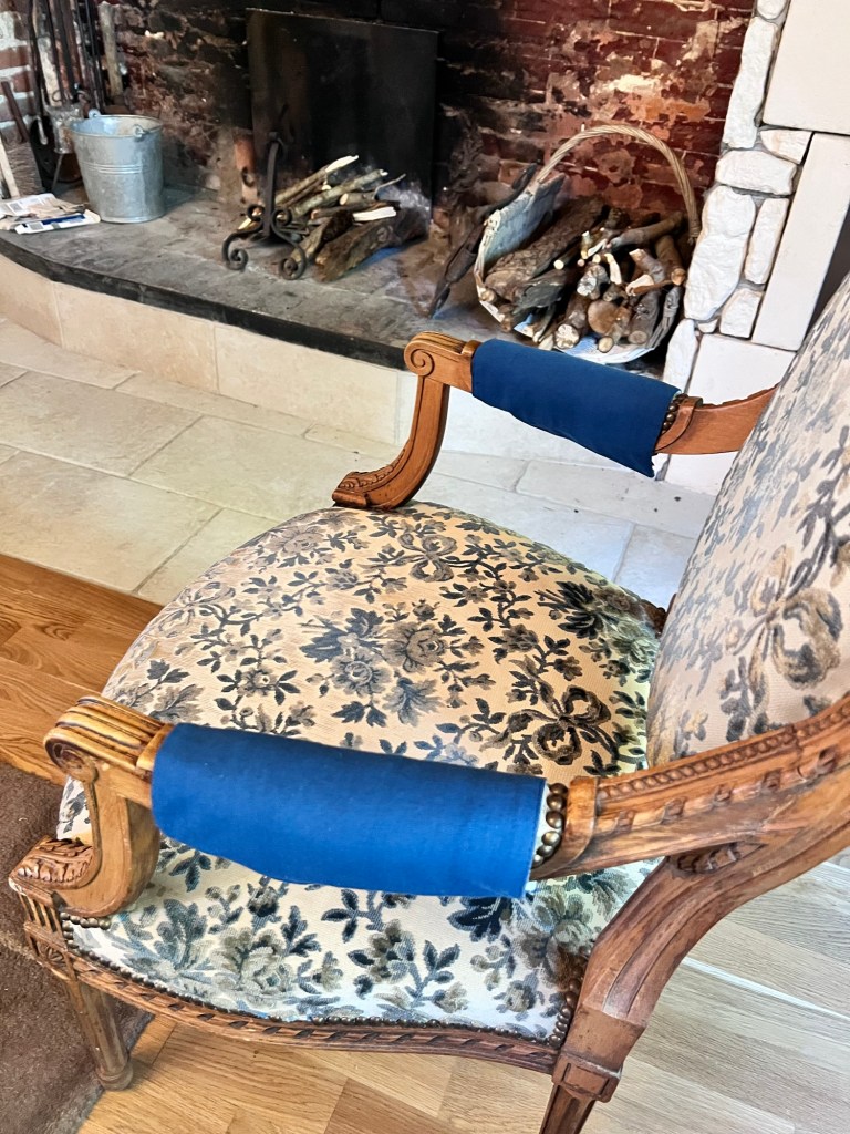Mum spent hours in a fiddly job to protect the armrests of my favourite Louis XIV chairs that were showing their age.